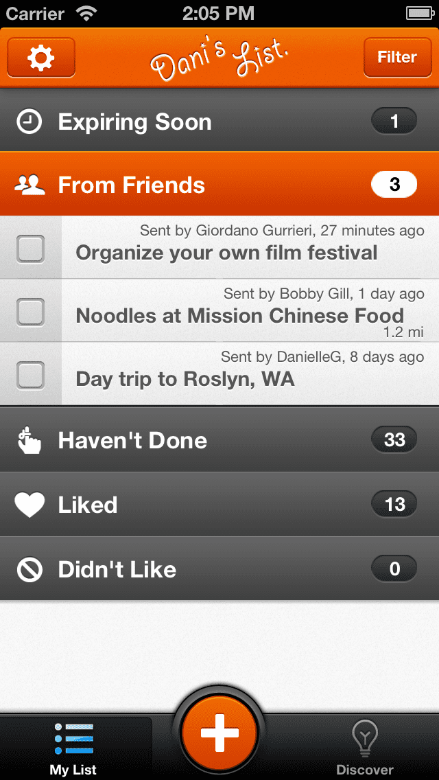 After Appsters launched, we basically took the innards of bahndr and, just like the good computer science students we were, abstracted it out into a generic backend-as-a-service platform (BLLCore) that we could rapidly build different types of apps with, kinda like Parse before there was Parse. So right on the heels of bahndr and Appsters, we used this new BLLCore platform and quickly released Dani’s List in mid 2013. Dani’s List was our unique take on creating a shareable to-do list app to discover and manage life experiences. It may look nothing like bahndr, but peel back the UI bits and you’ll find bahndr hiding beneath.